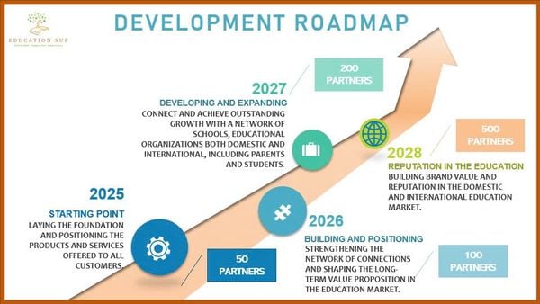 By 2027, Education Support aims to achieve significant growth with a comprehensive network connecting schools and educational organizations both domestically and internationally, including active involvement from parents and students. This will help expand our influence and enhance the quality of our services. Finally, 2028 will be the stage of building solid brand value and reputation within both domestic and international education markets, affirming our leadership position and the trust of the community.