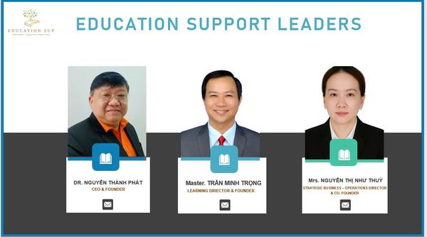 With a solid foundation from passionate founders – Dr. Nguyen Thanh Phat, the pioneer of the AI mastery community; Master. Tran Minh Trong, a Google-certified digital capability training expert; Mrs. Nguyen Thi Nhu Thuy, a strategic leader with extensive international education management experience - we are confident in delivering advanced, effective, and humanistic educational solutions, contributing to building a generation of outstanding Vietnamese individuals ready for the future. Join Education Support Vietnam in shaping the future of education!"