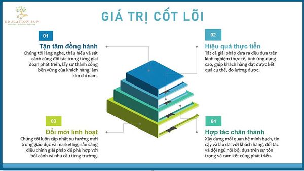 3. Đổi mới linh hoạt: Chúng tôi không ngừng cập nhật các xu hướng mới nhất trong lĩnh vực giáo dục và marketing, sẵn sàng điều chỉnh giải pháp để phù hợp với từng bối cảnh và nhu cầu riêng biệt của mỗi trường.